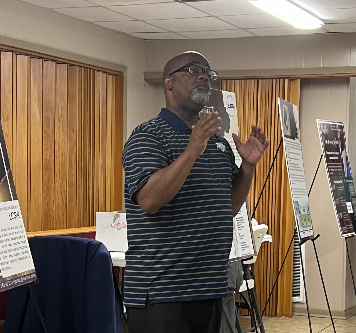 Edwin Jones Sr. from EJES, Inc. shares LCRR information with community members in Mansfield, LA.