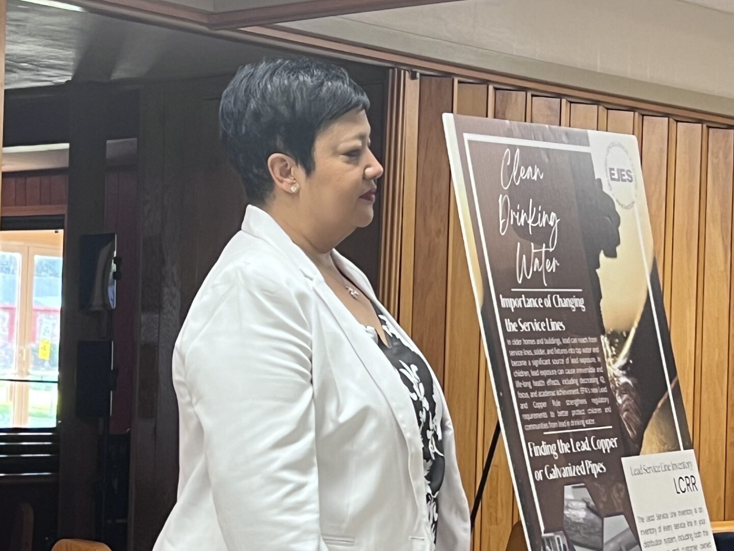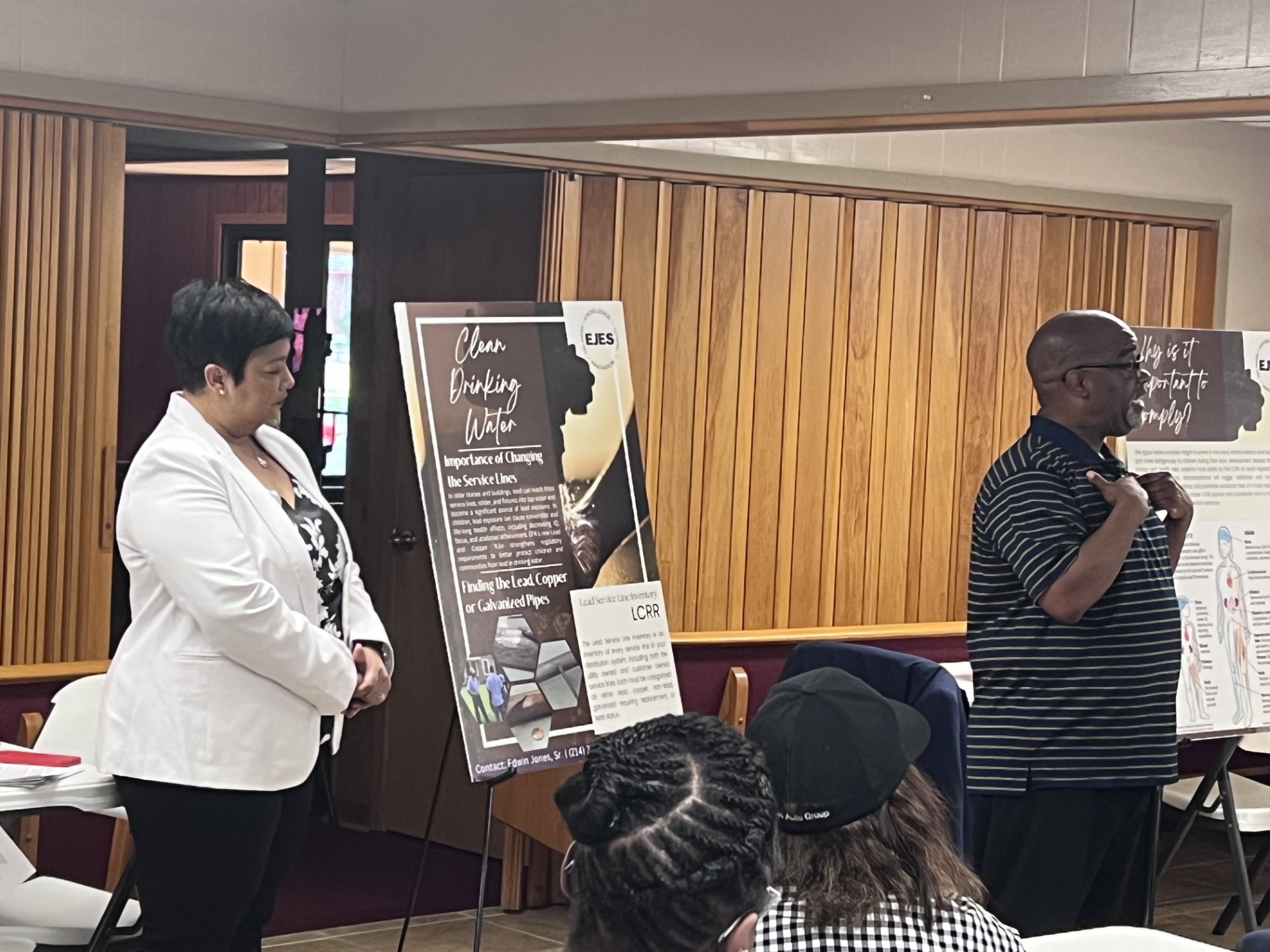Edwin Jones Sr. from EJES, Inc. and Nicole Gray address residents about LCRR details at St. John Baptist Church (900 Johnson St) in Mansfield, LA.